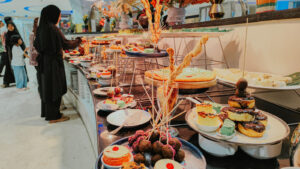 Konsep ini dirancang bukan sekadar sebagai tema dekorasi, melainkan perjalanan panca indra. Tamu disuguhkan rotasi menu harian yang mempertemukan kehangatan masakan Nusantara dengan ikon kuliner Timur Tengah seperti Kambing Guling, Nasi Khabsa, Nasi Mandi, Chicken Gulai, hingga Lamb Curry dan Canai.