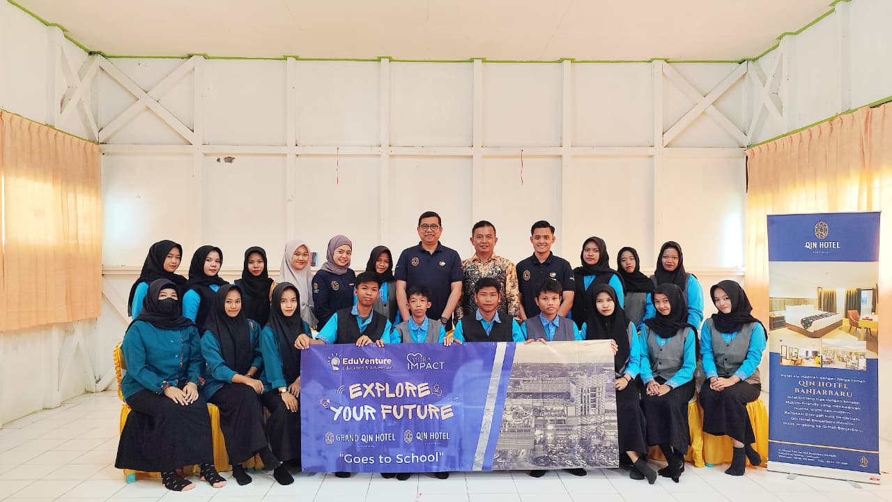 Empat jam perjalanan darat dari Banjarbaru tak menyurutkan semangat PasuQin (Pasukan Grand Qin Hotel & Qin Hotel Banjarbaru) untuk berbagi ilmu dan inspirasi. Melalui program EduVenture bertajuk “Explore Your Future – PasuQin Goes to School”, mereka mendatangi SMKN 3 Amuntai dengan satu tujuan: membuka cakrawala masa depan para pelajar tentang dunia kerja perhotelan.