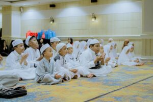 Setelah tausiyah, acara dilanjutkan dengan sesi doa bersama yang dipimpin oleh Ustaz Ahmad Muwaffaq. Seluruh peserta larut dalam suasana penuh khusyuk, memanjatkan doa untuk keberkahan hidup, kelancaran pekerjaan, serta kebahagiaan bagi anak-anak yatim yang turut hadir dalam kesempatan ini.
