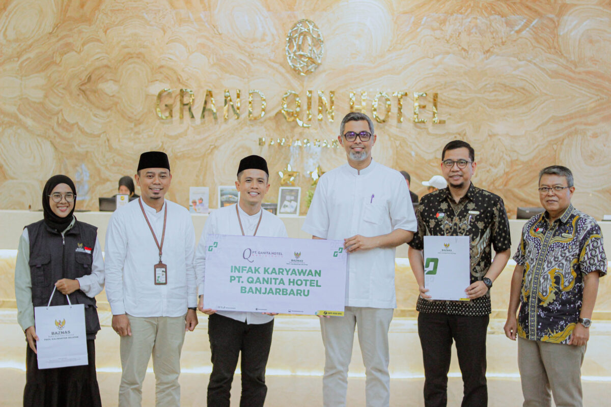 Banjarbaru, 26 Februari 2026 – Grand Qin Hotel Banjarbaru yang berada di bawah naungan PT. Qanita Hotel Banjarbaru resmi melaksanakan Penandatanganan Komitmen Pengelolaan dan Penyaluran Infaq seluruh karyawan untuk mendukung kegiatan keagamaan serta pembangunan sarana ibadah berupa Masjid Harun Aliyah Nur Madinah yang berlokasi di Kota Citra Graha, Banjarbaru.