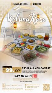 “Kami menyadari bahwa kenyamanan adalah kunci dari sebuah pertemuan yang berkesan. Dengan adanya Kasturi Lounge yang smoking-friendly dan ber-AC, ditambah paket takjil Kelana Rasa yang menggugah selera, kami ingin tamu kami merasa benar-benar dimanjakan tanpa harus merasa terbatasi oleh aturan ruang. Cukup dengan 99 ribu, Anda sudah mendapatkan tempat bukber paling chill di kota ini. Apalagi kami tambah dengan promo Beli 10 Gratis 1, jadi momen kumpul-kumpul bareng teman atau keluarga bisa lebih hemat dan makin seru,”. jelas Hermadi selaku Asst. FB Manager Grand Qin & Qin Hotel Banjarbaru.
