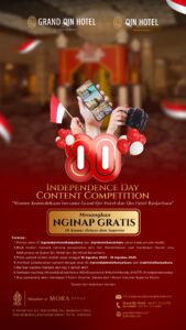 Dengan semangat itu, Grand Qin Hotel dan Qin Hotel Banjarbaru mempersembahkan rangkaian kegiatan dan promo spesial untuk memaknai hari bersejarah ini. Sebagai hotel bintang empat yang menjadi favorit keluarga, Grand Qin dan Qin Hotel ingin mengajak masyarakat Banua, para tamu, serta karyawan untuk merayakan kemerdekaan melalui cara yang seru, kompak, penuh kebersamaan, dan sarat makna.