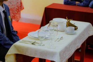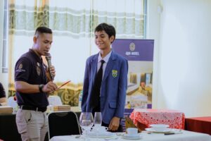 Tidak hanya memberikan motivasi dan materi, para peserta juga berkesempatan untuk mempelajari dasar Table Manner oleh Infrandani S, Restaurant and Banquet Manager Grand Qin Hotel Banjarbaru. Para peserta diajarkan etika dan tata cara makan yang benar. Usai materi table manner, beberapa peserta berhasil mendapatkan gift dari Grand Qin Hotel Banjarbaru.